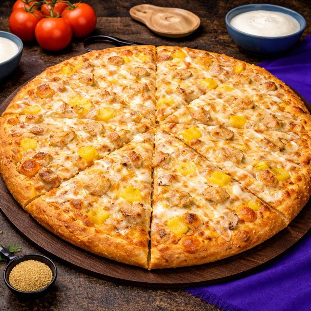 Фирменный соус, куриное филе, ананас, сыр моцарелла