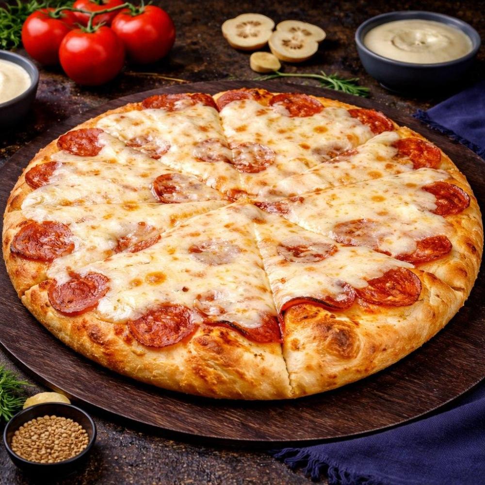 Фирменный соус, пепперони, сыр моцарелла