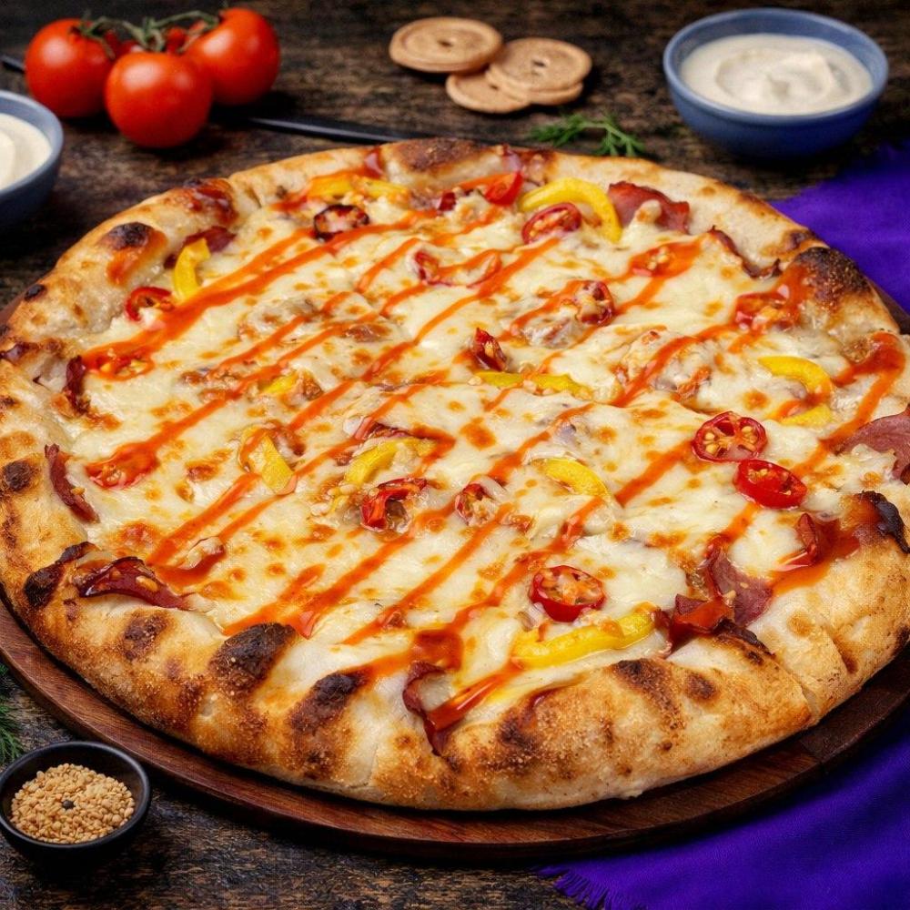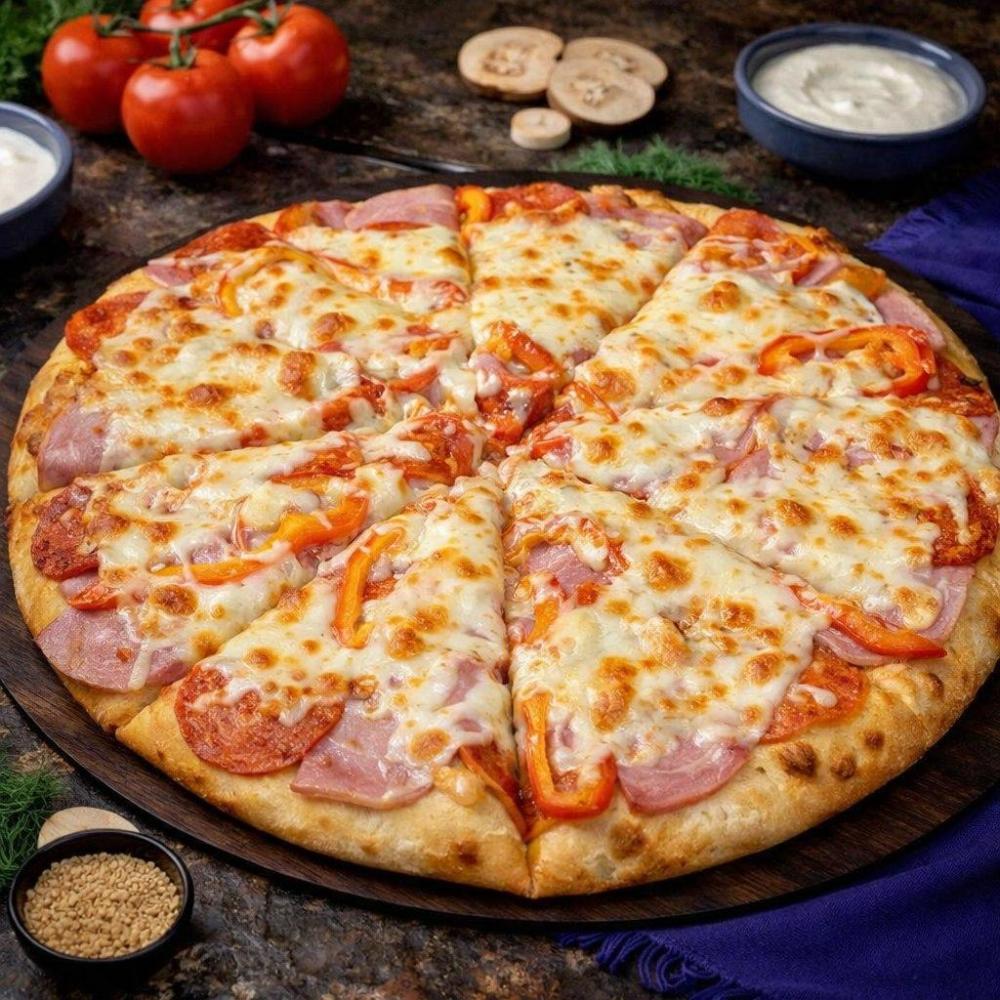 Фирменный соус, пепперони, ветчина, куриное филе, болгарский перец, сыр моцарелла.