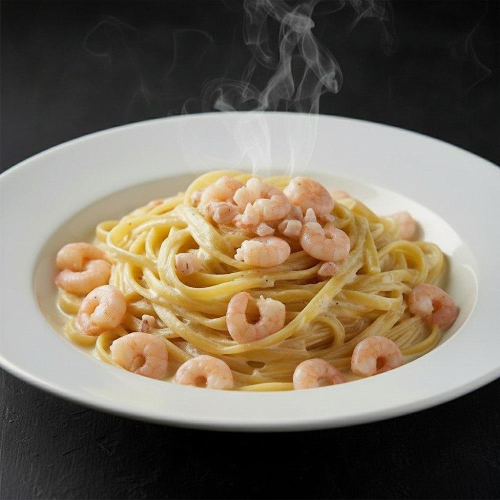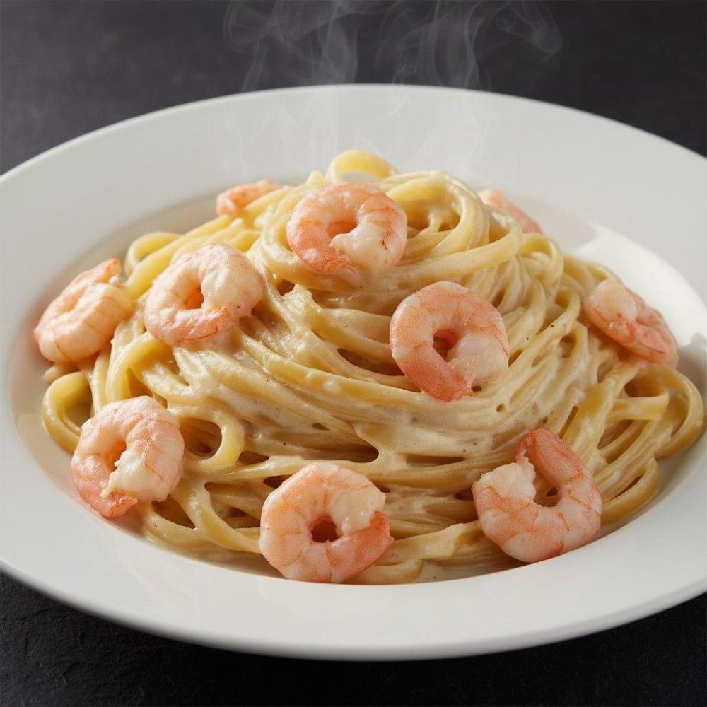 макароны фетучини, креветки, креветочный соус, чеснок, черный перец, сливки, сыр