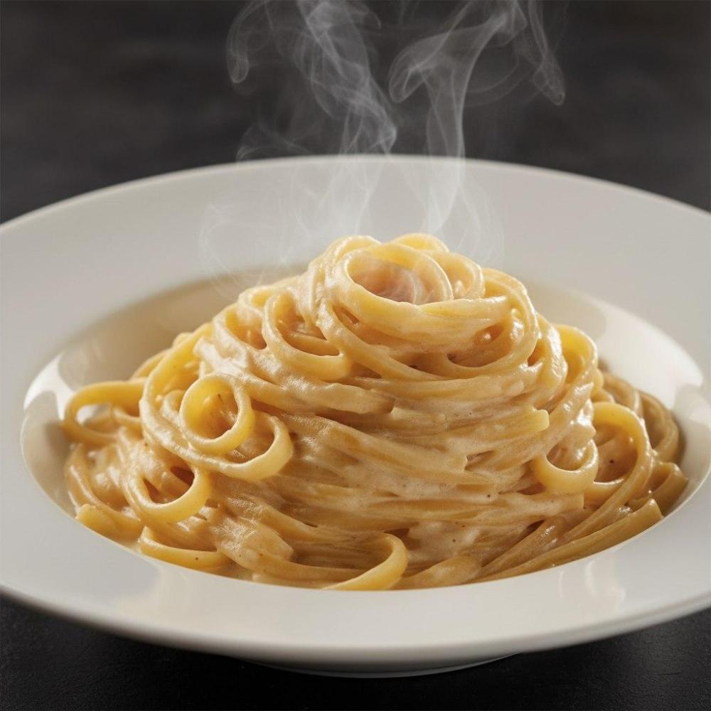 Макароны фетучини, сливки, сыр